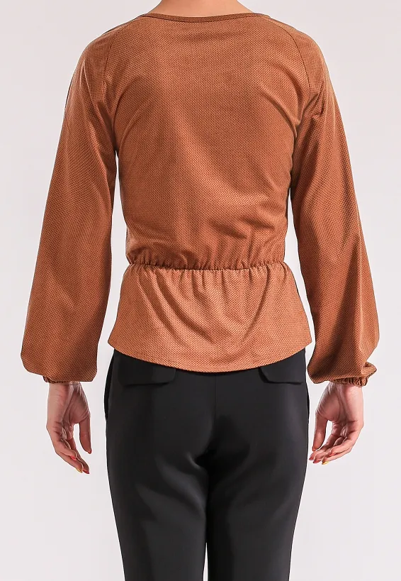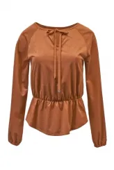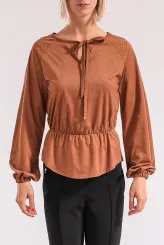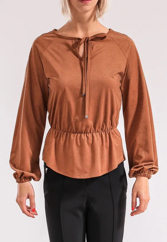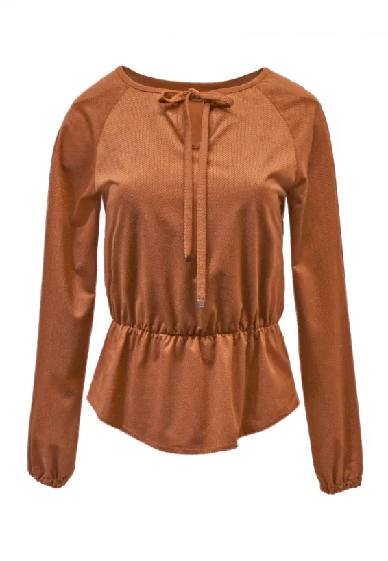 Karamelová halenka s nařasením a tkaničkou