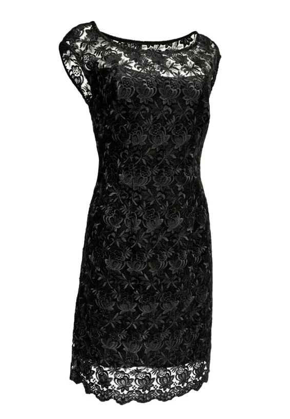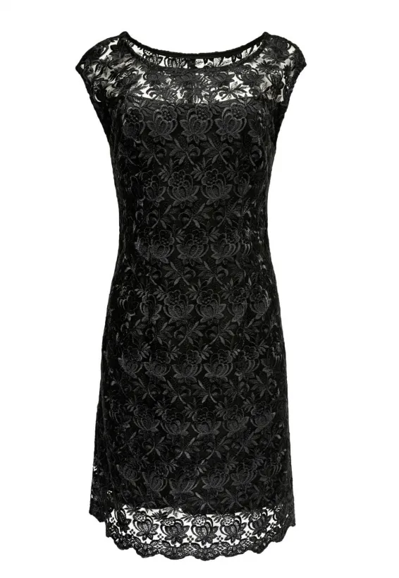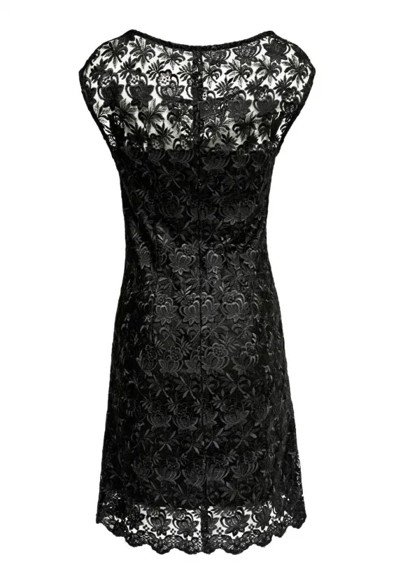 Černé krajkové šaty s kulatým výstřihem