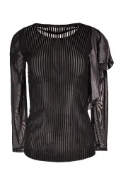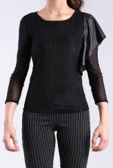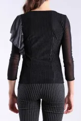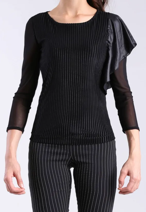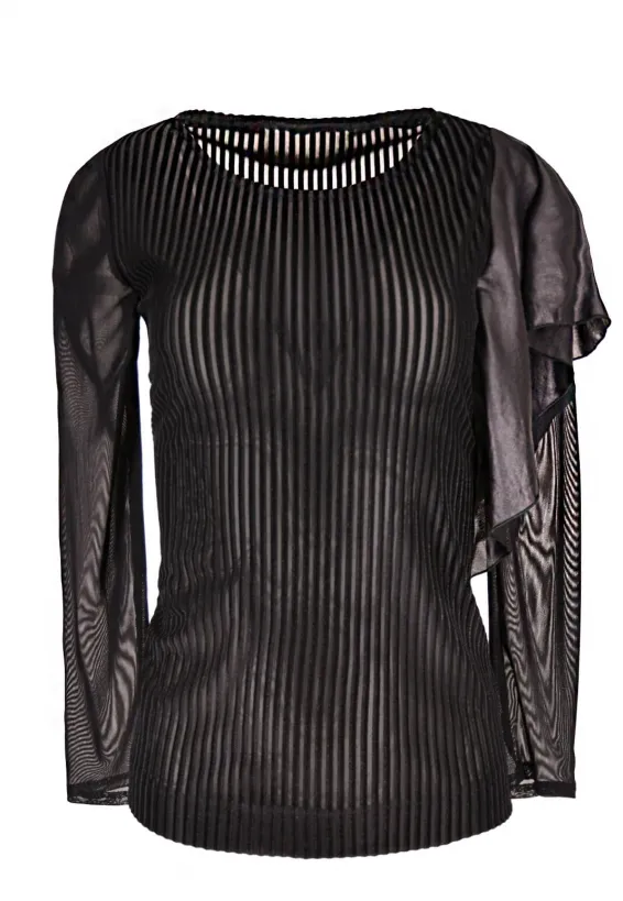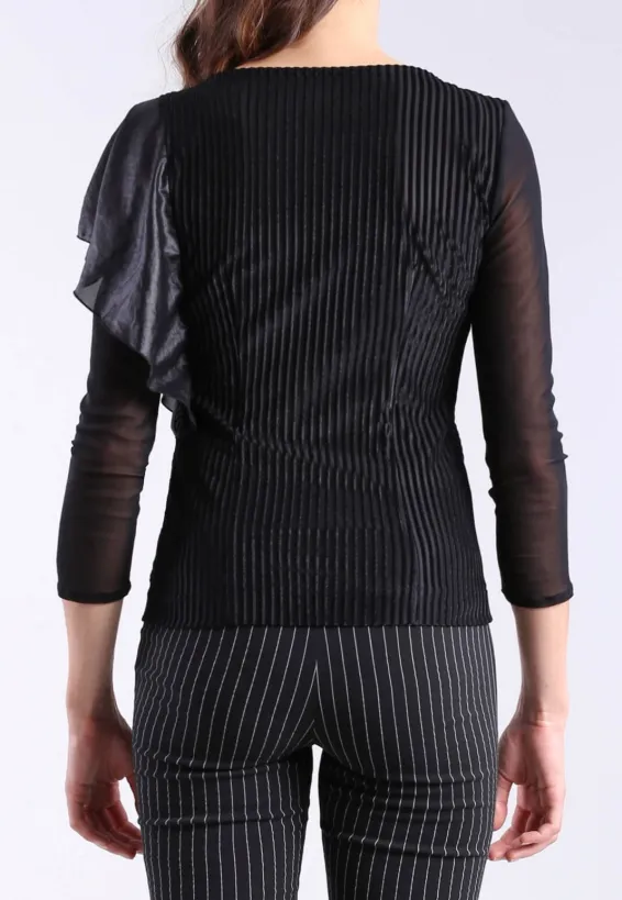 Černá halenka s volánem a žebrovaným vzorem
