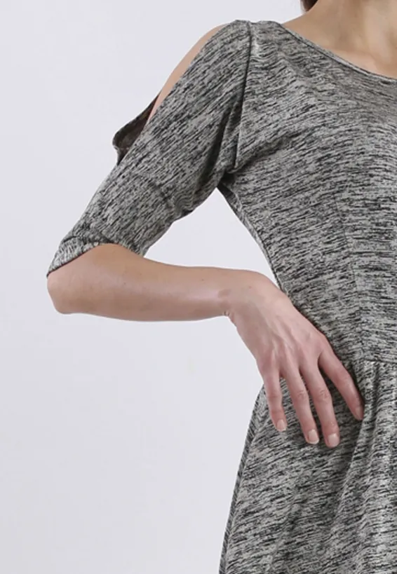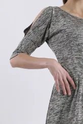 Tyto melírované šaty s přiléhavým živůtkem a plynule rozšířenou sukní přirozeně formují ženskou siluetu a zajišťují sebevědomý vzhled po celý den. Kulatý výstřih jemně rámuje dekolt a dodává modelu uhlazenou, nenápadnou sofistikovanost. Tříčtvrteční rukávy elegantně opticky prodlužují ruce a zachovávají pohodlí při celodenním nošení. Splývavá tkanina v teplém béžovo-šedém melíru vizuálně harmonizuje postavu a skvěle odolává zmačkání. Délka sukně ke kolenům zaručuje profesionální vzhled vhodný na obchodní schůzku i pracovní prezentaci. Model je vyroben ručně v krejčovské dílně v limitovaném počtu do 3 kusů od velikosti, což zaručuje jeho výjimečnost a precizní padnutí.