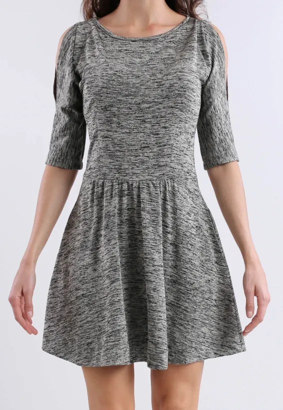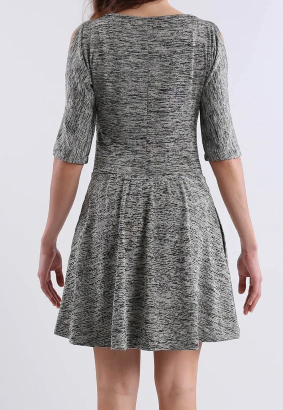 Šaty s rozšířenou sukní, melírovaně béžové
