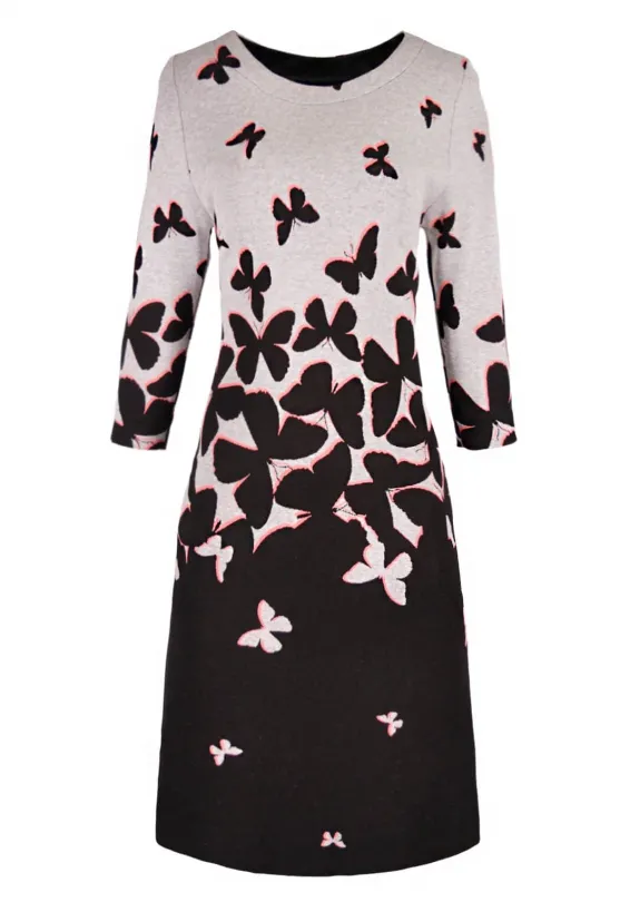 Šaty s motýlím vzorem, černo-šedé