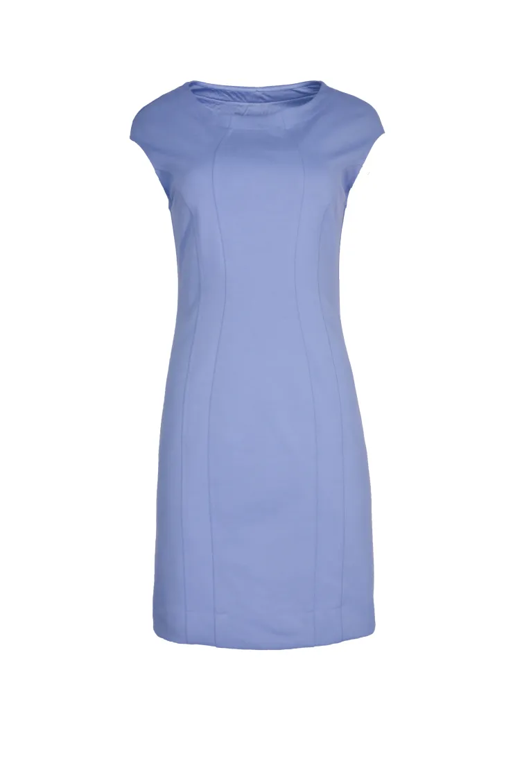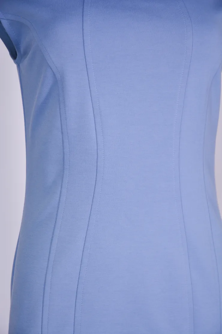 Elegantní princesové šaty jsou v předním díle podélně členěné, švy jsou zvýrazněny štepy v barvě šatů. Příjemná, nevtíravá světle modrá barva umožní využít tento univerzální model pro různé příležitosti - pracovní či obchodní schůzka, rodinná oslava, setkání se spolužáky...