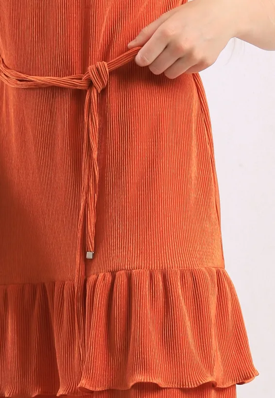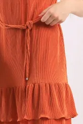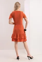 Oranžové šaty s nařásením a páskem