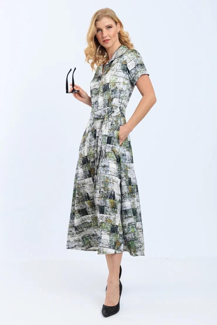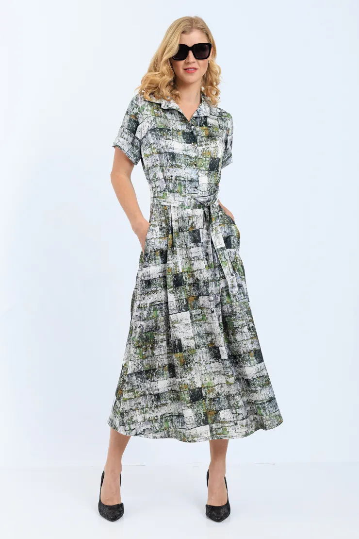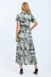 Košilové šaty, zeleno-šedý abstraktní vzor